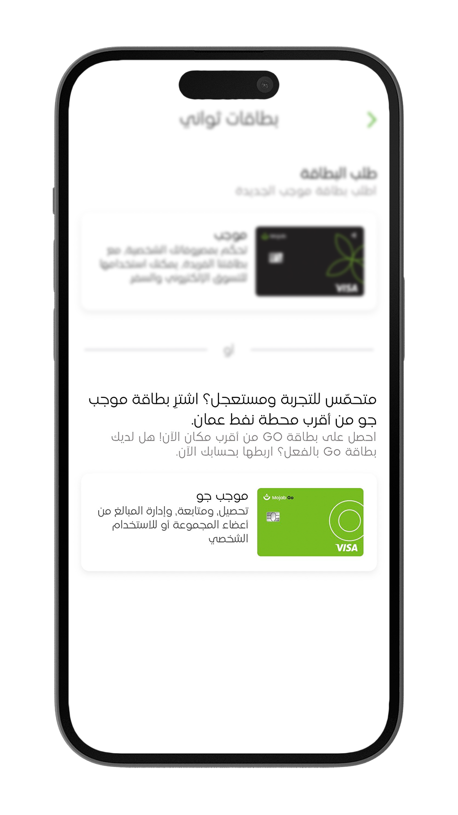 موجب جو سهّلت عليك عملية الدفع الجماعي، احصل عليها من أقرب محل "أهلين" في محطات نفط عُمان، واربط حتى 3 بطاقات " موجب جو " بحساب واحد. ،كل بطاقة تقدر تخصّصها حسب تفضيلك. وميزة "المجموعات" تتيح لك مشاركة الدفع بسهولة مع الأهل أو الأصدقاء. حل ذكي، مرن، وعلى ذوقك.