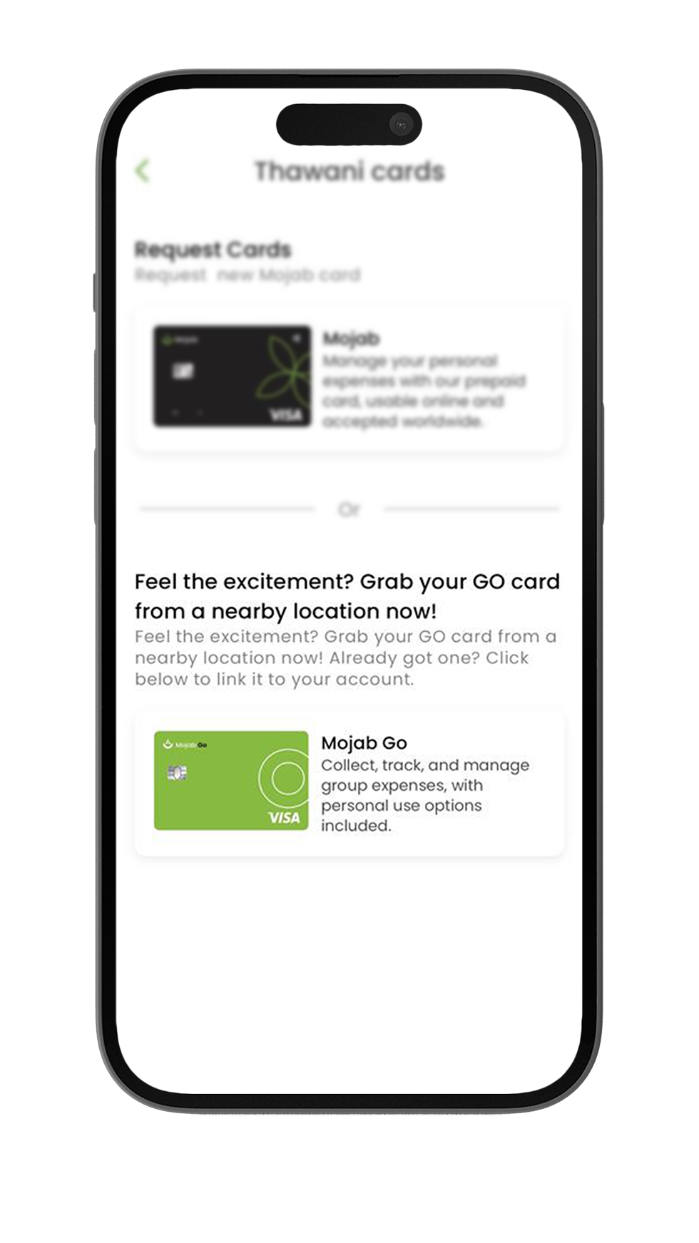 Mojab Go simplifies group payments. Available at Ahlain stores in Oman Oil petrol stations, you can link up to three Mojab Go cards and customize each one based on your preferences. With the Groups feature, enjoy shared payments with family and friends by creating a group of up to 10 members—perfect for travelers, work teams, or planned group trips.
