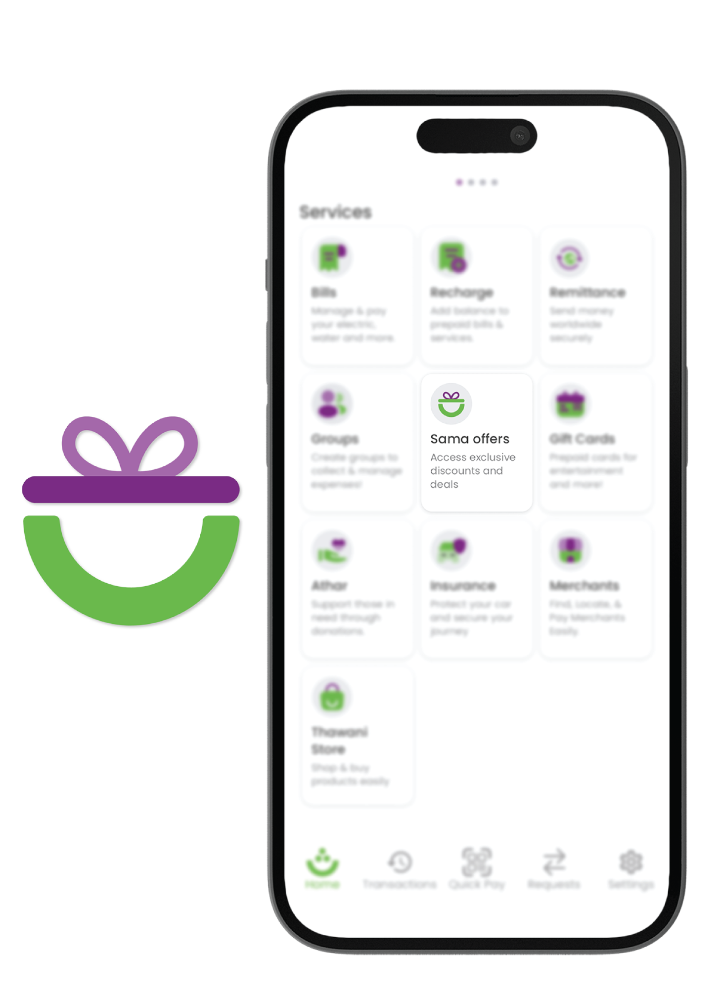 Sama is an exclusive feature in Thawani Pay app, in collaboration with the Siraj Endowment Foundation (higher education students) and Employees of public and private sector entities offering unique opportunities to benefit from special offers and discounts at many of their favorite places!