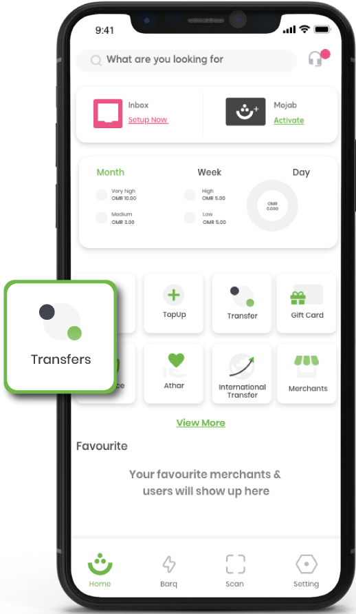Enjoy an easy and simple transfer through Thawani Pay. You can transfer money from your Mojab Wallet to any Mojab user in seconds and any local bank account with minimum fees within two working days. Thawani assures you a transaction with the highest levels of security.